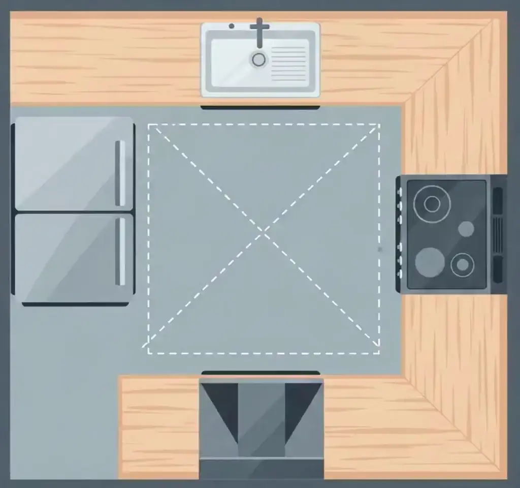 냉장고·싱크대·가스렌지 삼각 배치 | 주방 동선 최적화 레이아웃